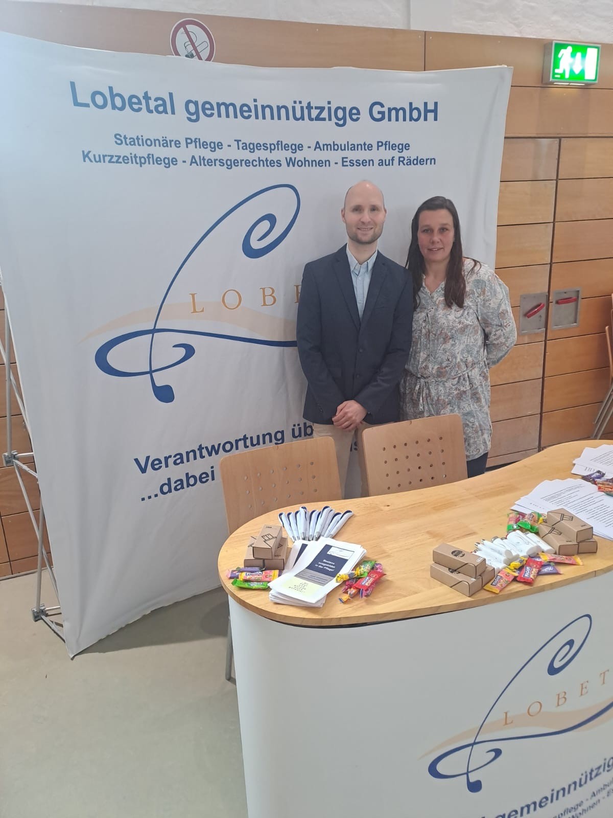 Vor Ort wurde unser Messestand von Pflegedienstleiterin Ivonne Junghans und dem stellvertretenden Verwaltungsleiter Philipp Steil betreut. Mit großem Engagement stellten sie die Ausbildungsmöglichkeit innerhalb der Lobetaleinrichtungen und unserer Kooperationspartner vor. Besonders positiv fiel die Resonanz der Besucherinnen aus: Interessierte nutzten die Gelegenheit zum persönlichen Austausch. „Wir konnten gute Gespräche führen und da war das Interesse an unserem Ausbildungsangebot deutlich spürbar“, resümierte Philipp Steil im Anschluss an die Messe.